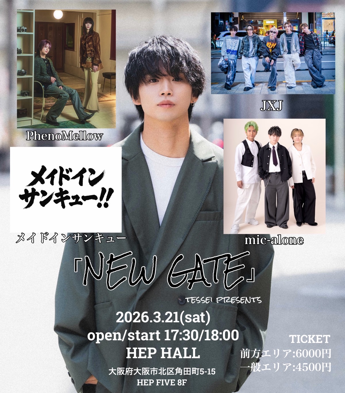 3/21 「NEW GATE」哲誠主催 op 17:30 st 18:00・JXJ・phenomellow・mic-alone・メイドインサンキュー・哲誠